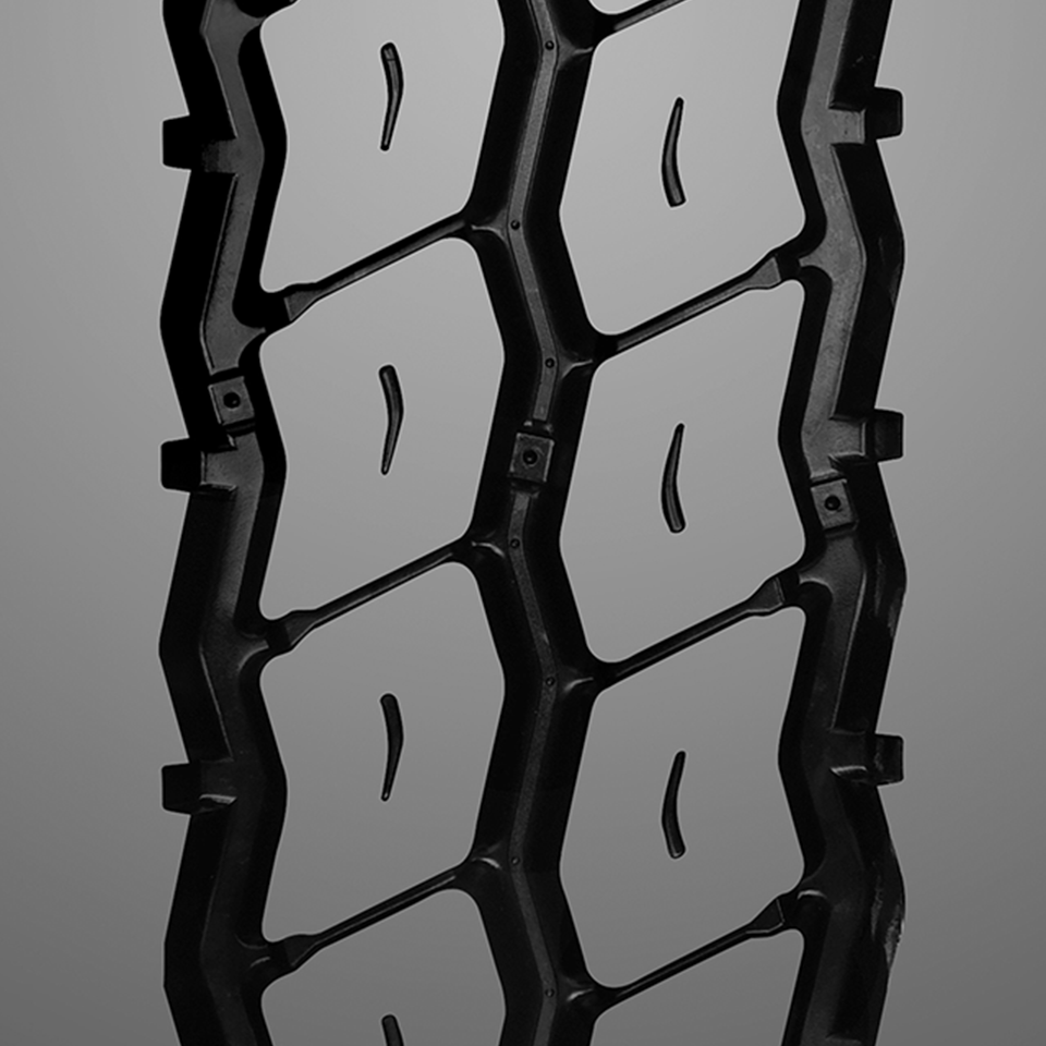 Protective ridges at groove bases enhance self-cleaning, maintaining optimal tread performance.