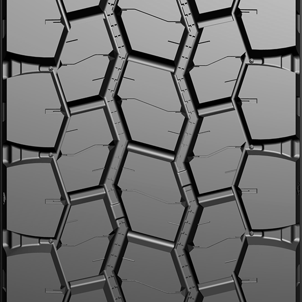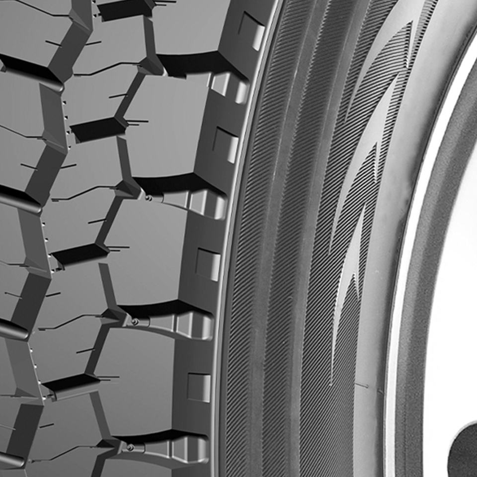 Suited for long haul roads, reinforced housing boosts toughness and refurbishability, 3D tread enhances...