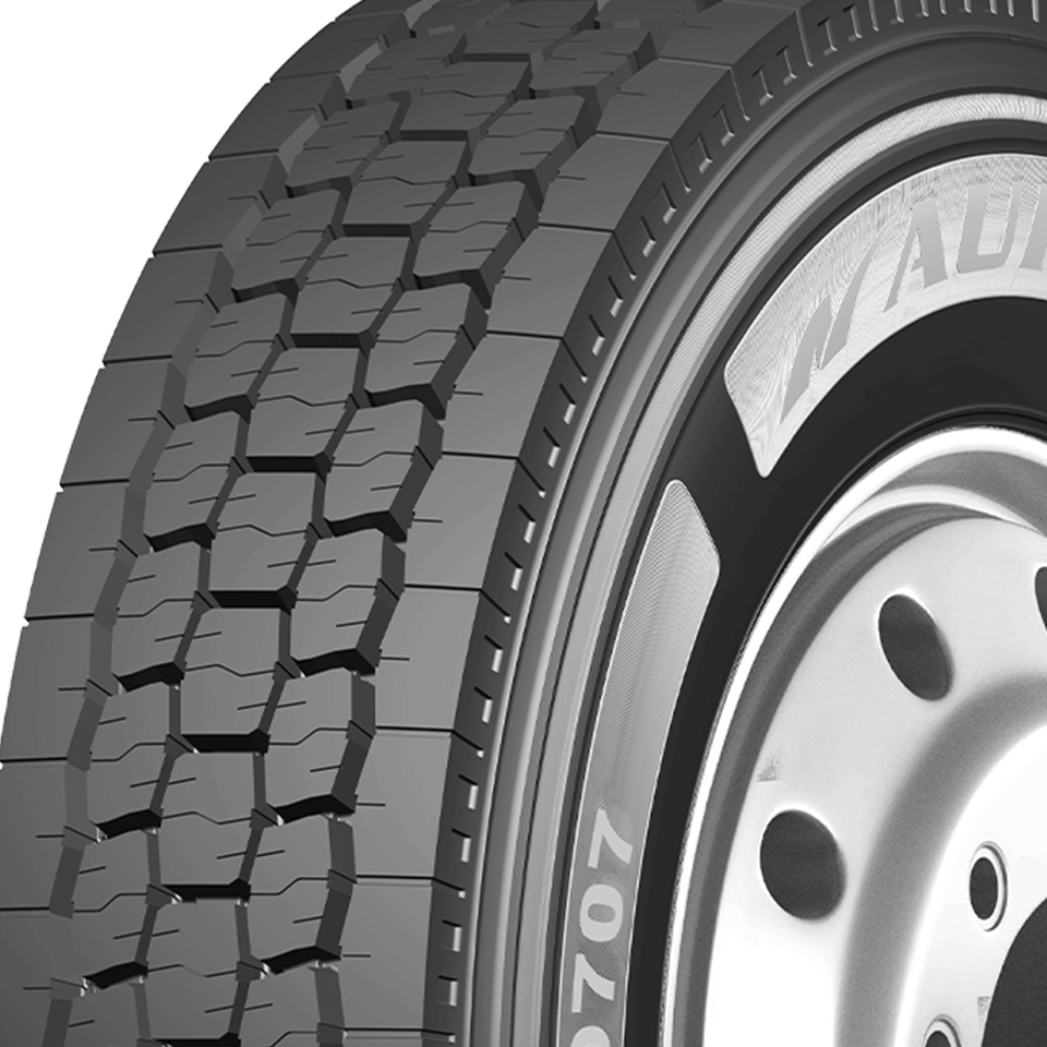 Designed for regional roads, wider shoulders resist scrubbing for durability, advanced tread drains water...