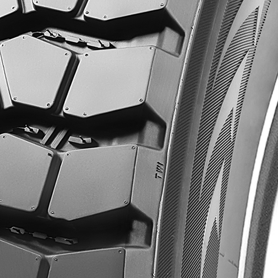 Crafted for regional terrain, this tire features a solid shoulder to resist abrasion, large center blocks...